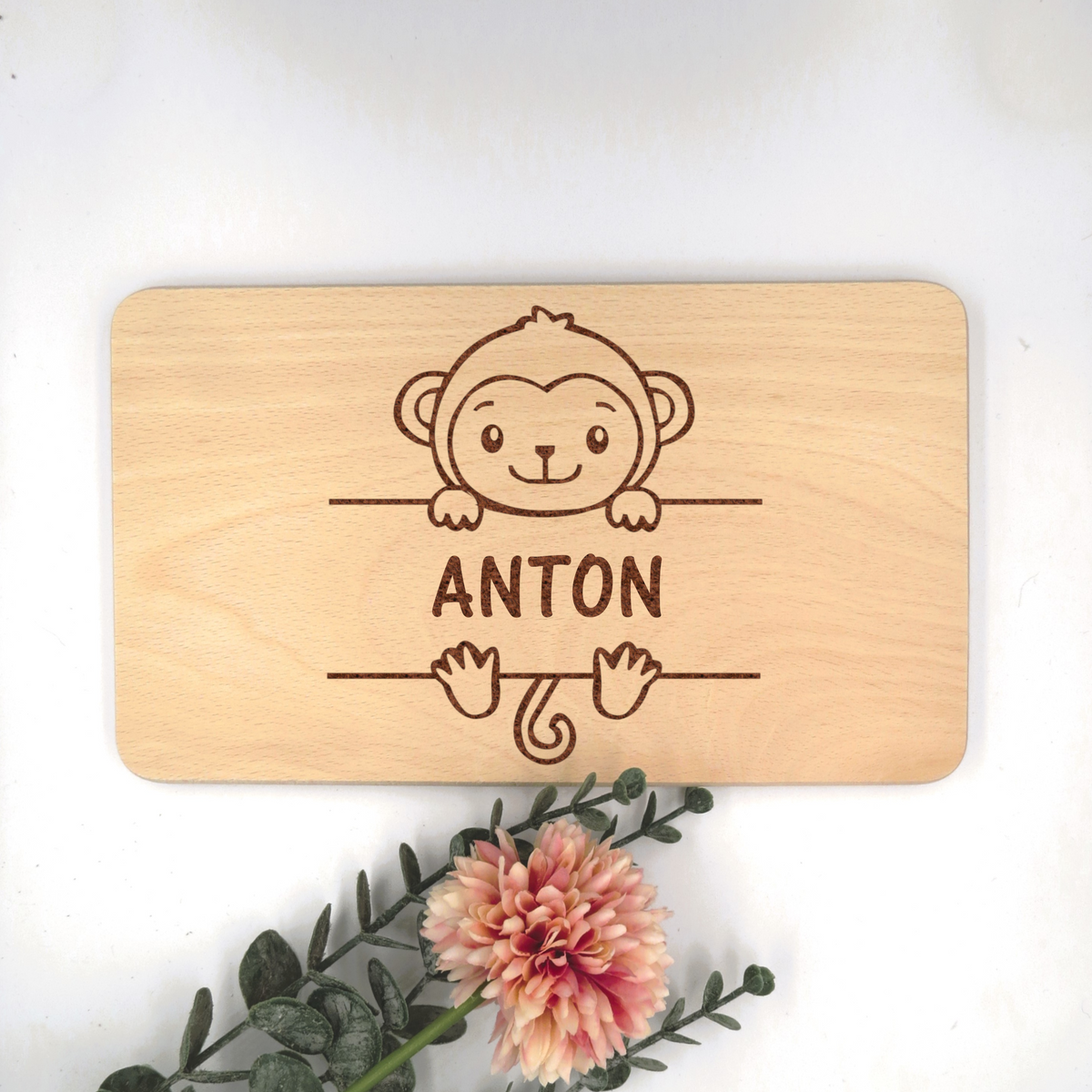 Personalisiertes Frühstücksbrett für Kinder - Affe