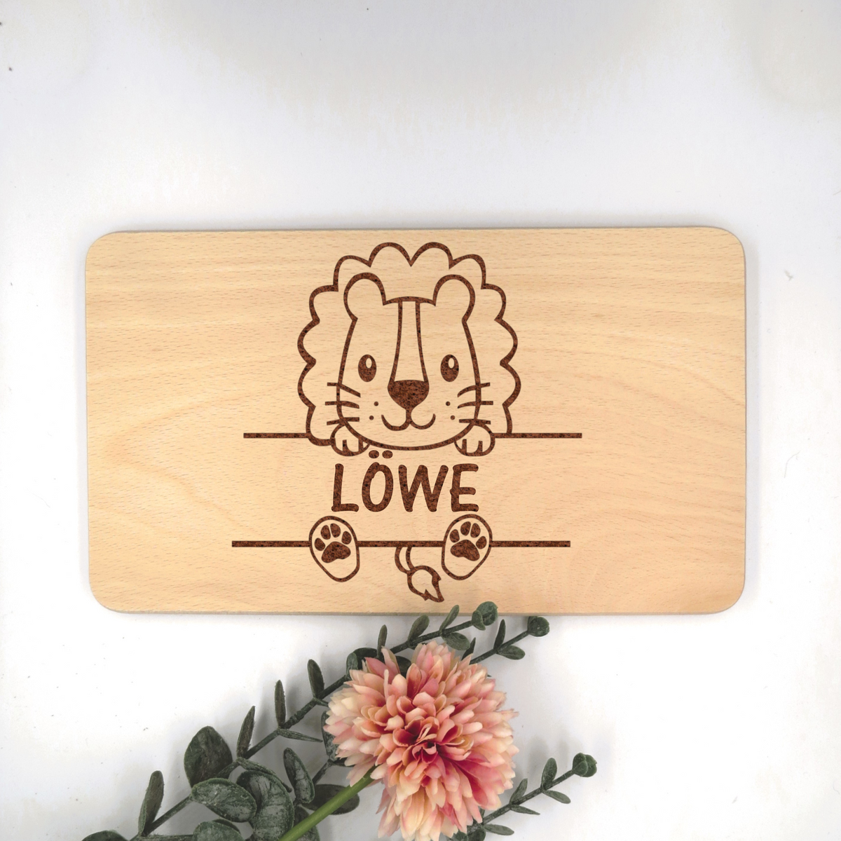 Personalisiertes Frühstücksbrett für Kinder - Löwe