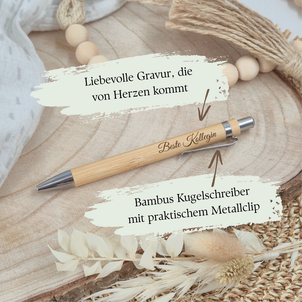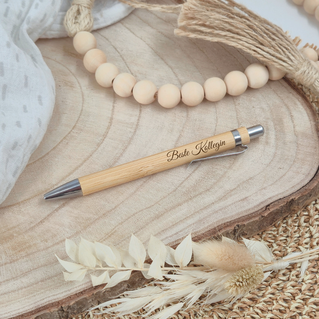 Warum unser gravierter Bambus-Kugelschreiber „Beste Kollegin“ überzeugt: