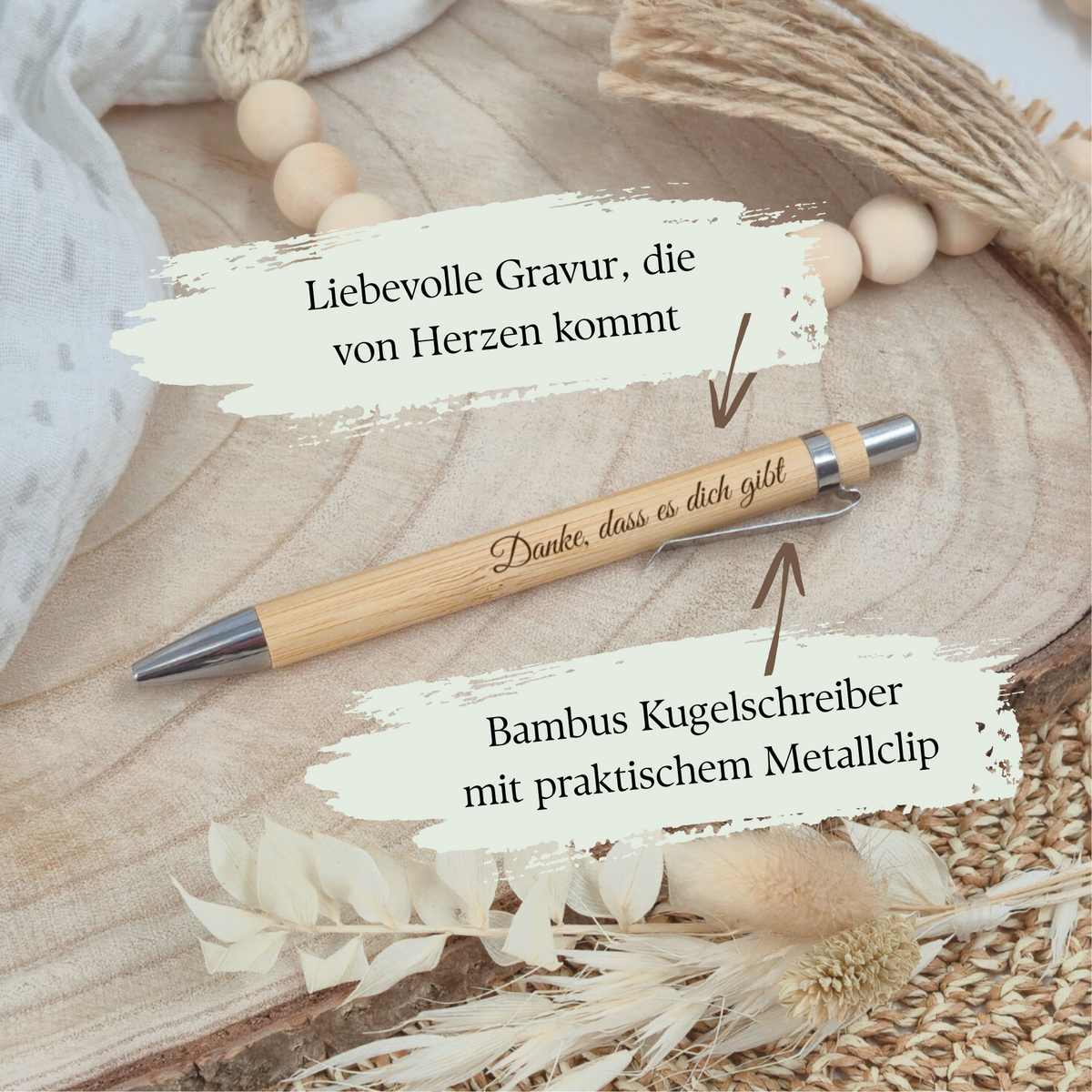 🌿 Holzkugelschreiber aus Bambus – „Danke, dass es dich gibt“