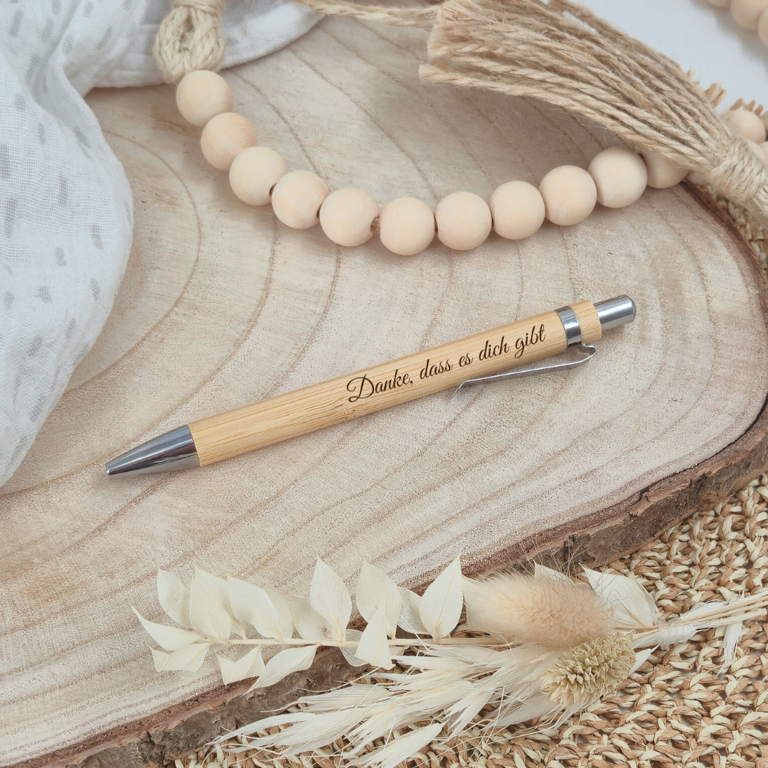 Warum unser gravierter Bambus-Kugelschreiber „Danke, dass es dich gibt“ ĂŒberzeugt: