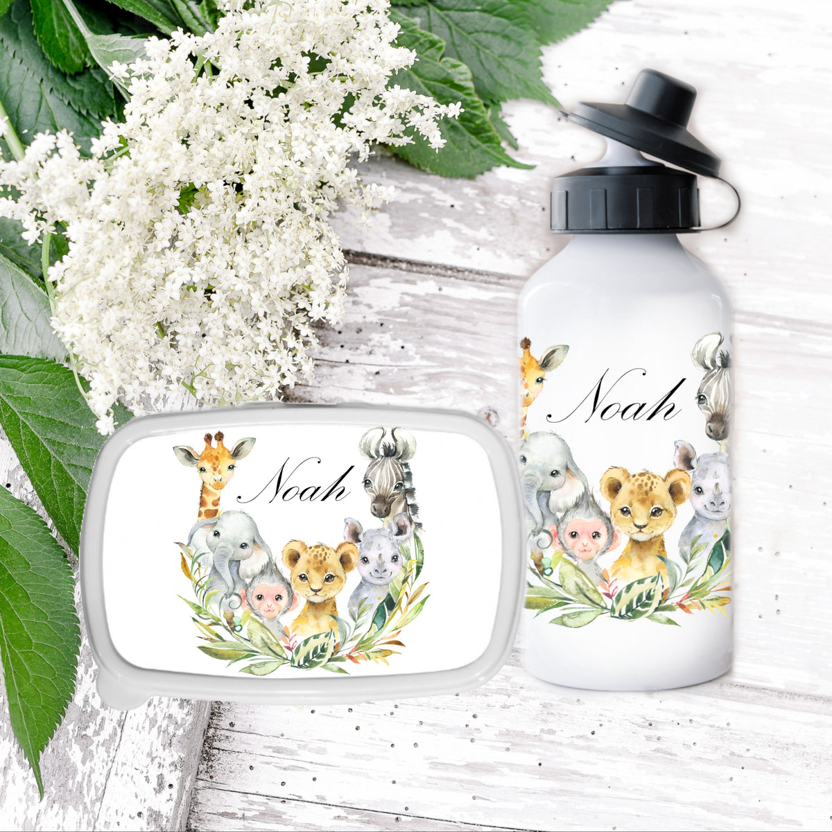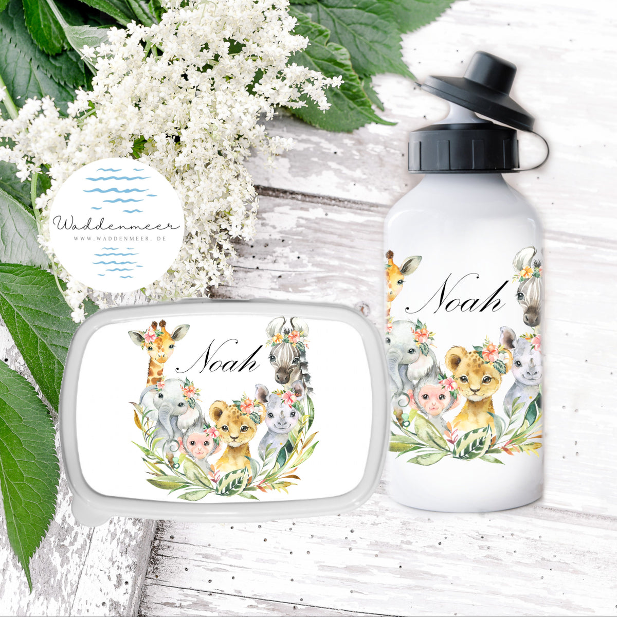 Set aus Brotdose und Trinkflasche Afrika Tiere