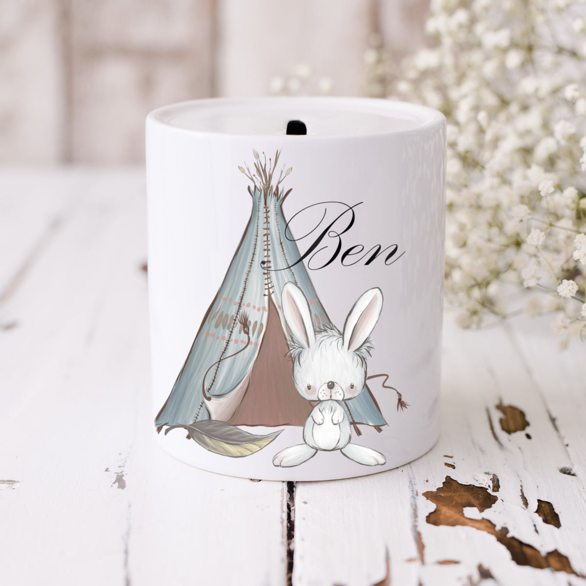 Diese personalisierte Spardose für Kinder ist ein ganz besonderes Geschenk, denn du kannst sie mit einem Wunschnamen gestalten.