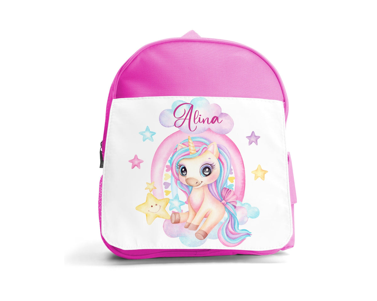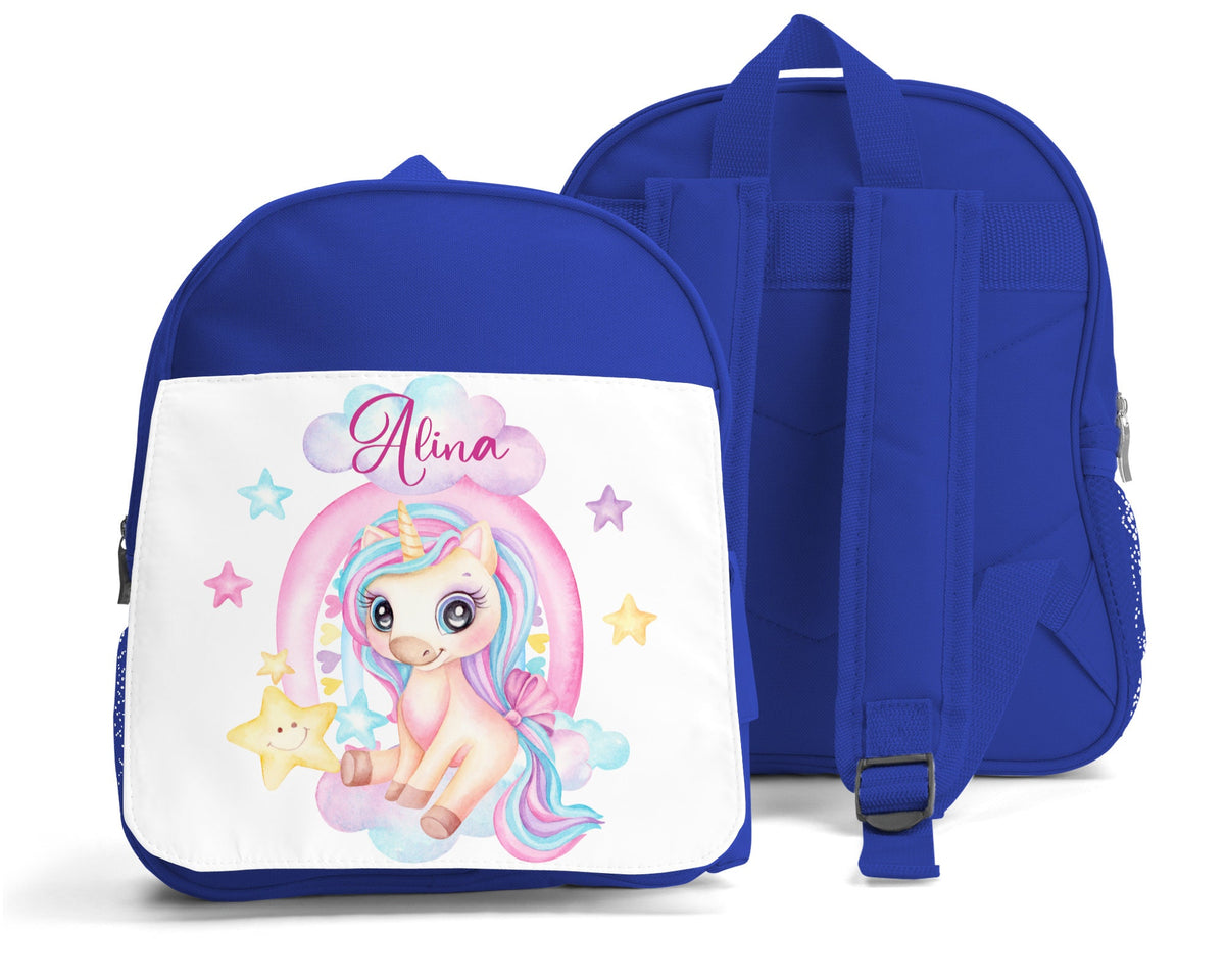 Dieser praktische Rucksack kann individuell mit dem Namen Deines Kindes und dem gewünschten Motiv bedruckt werden.