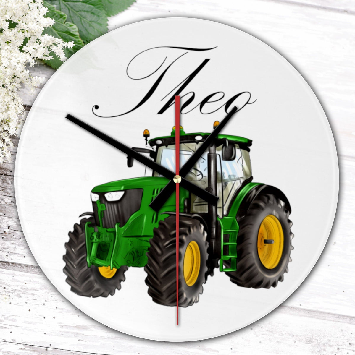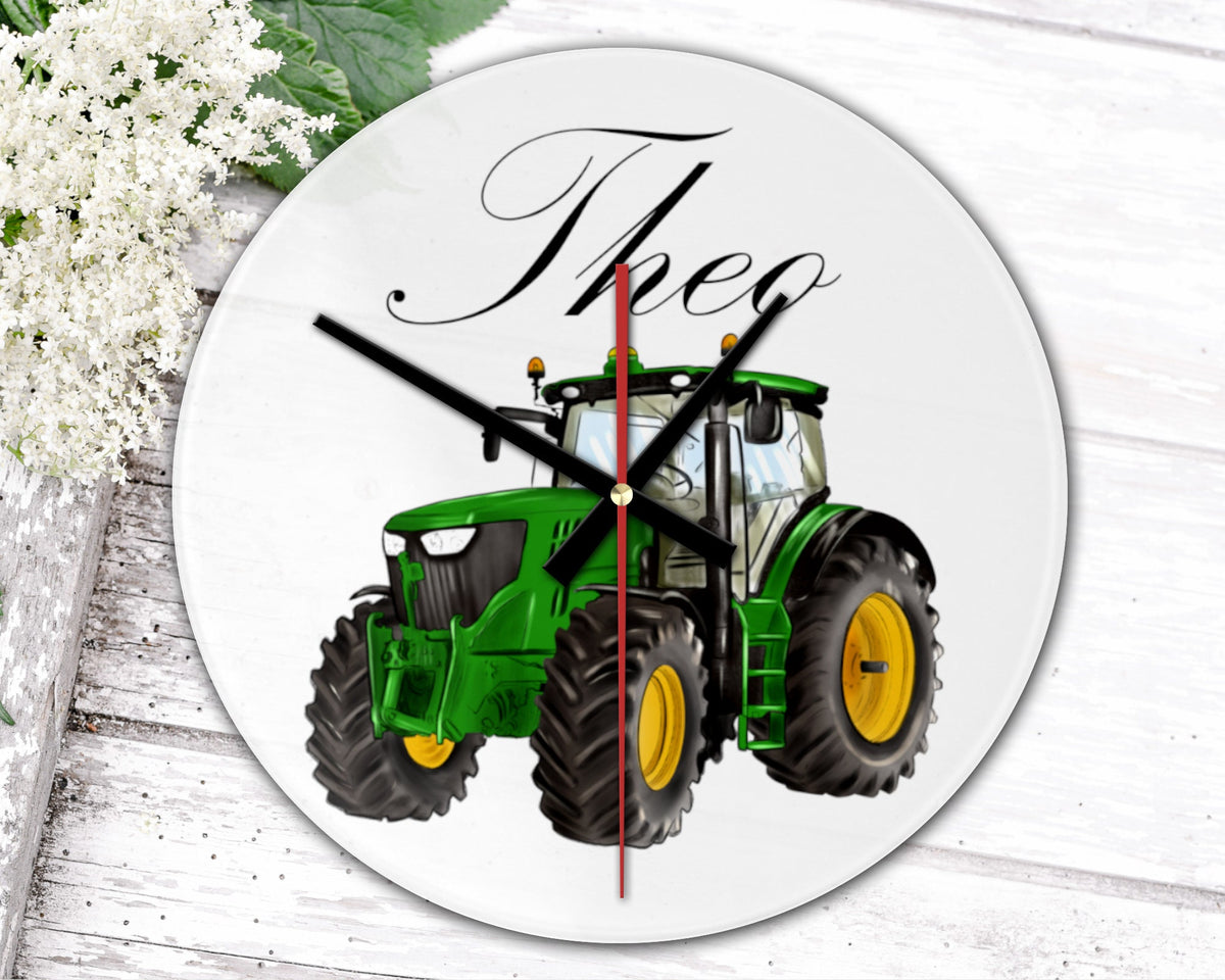 Personalisierte Wanduhr mit Wunschnamen aus Glas.
