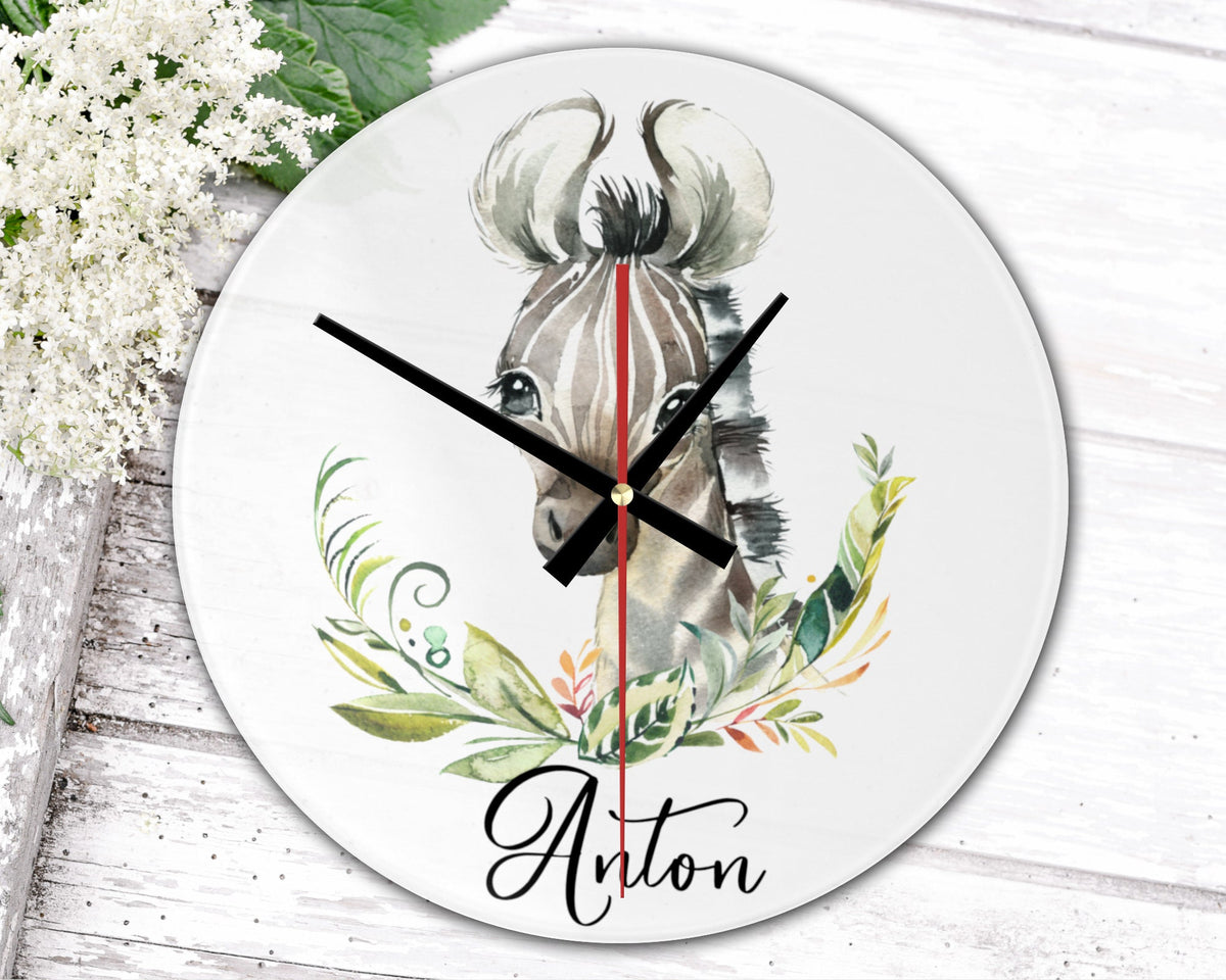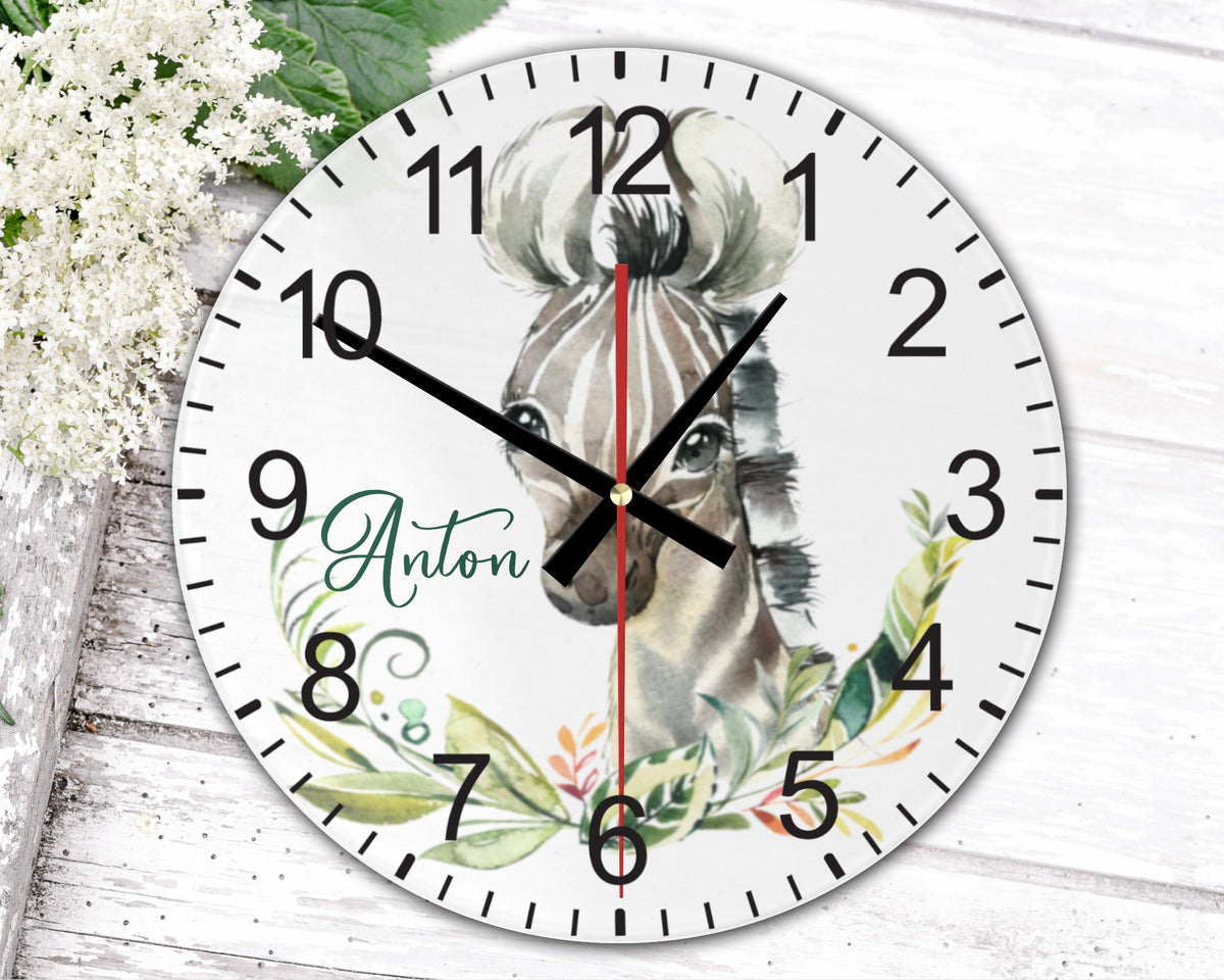 Mit dieser einzigartigen Wanduhr werden die Augen des beschenkten Kindes ganz sicher zum Leuchten bringen, denn sie kann mit dem eigenen Namen und dem Wunschmotiv gestaltet werden.