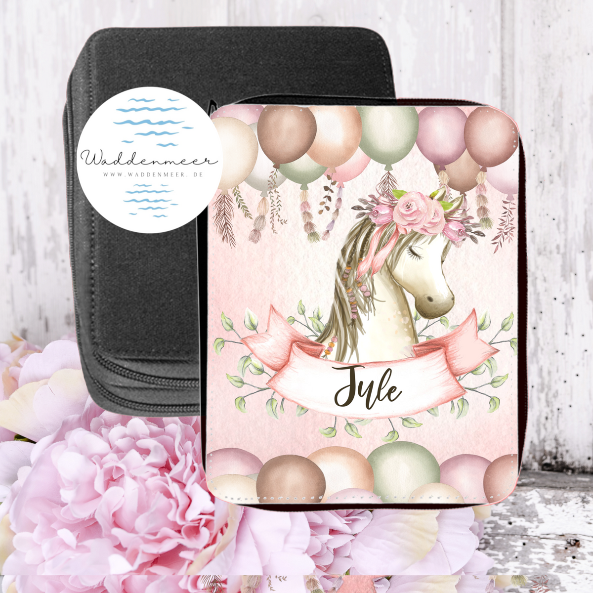 Auf diese Federtasche Wunschmotiv und eigenem Namen ist jedes Kind besonders stolz.