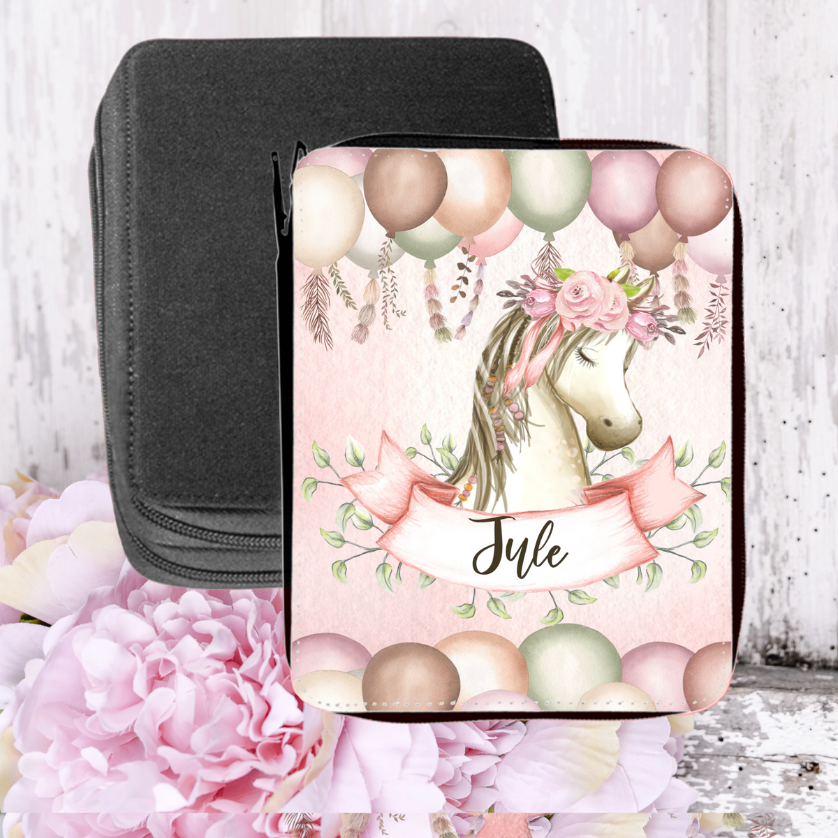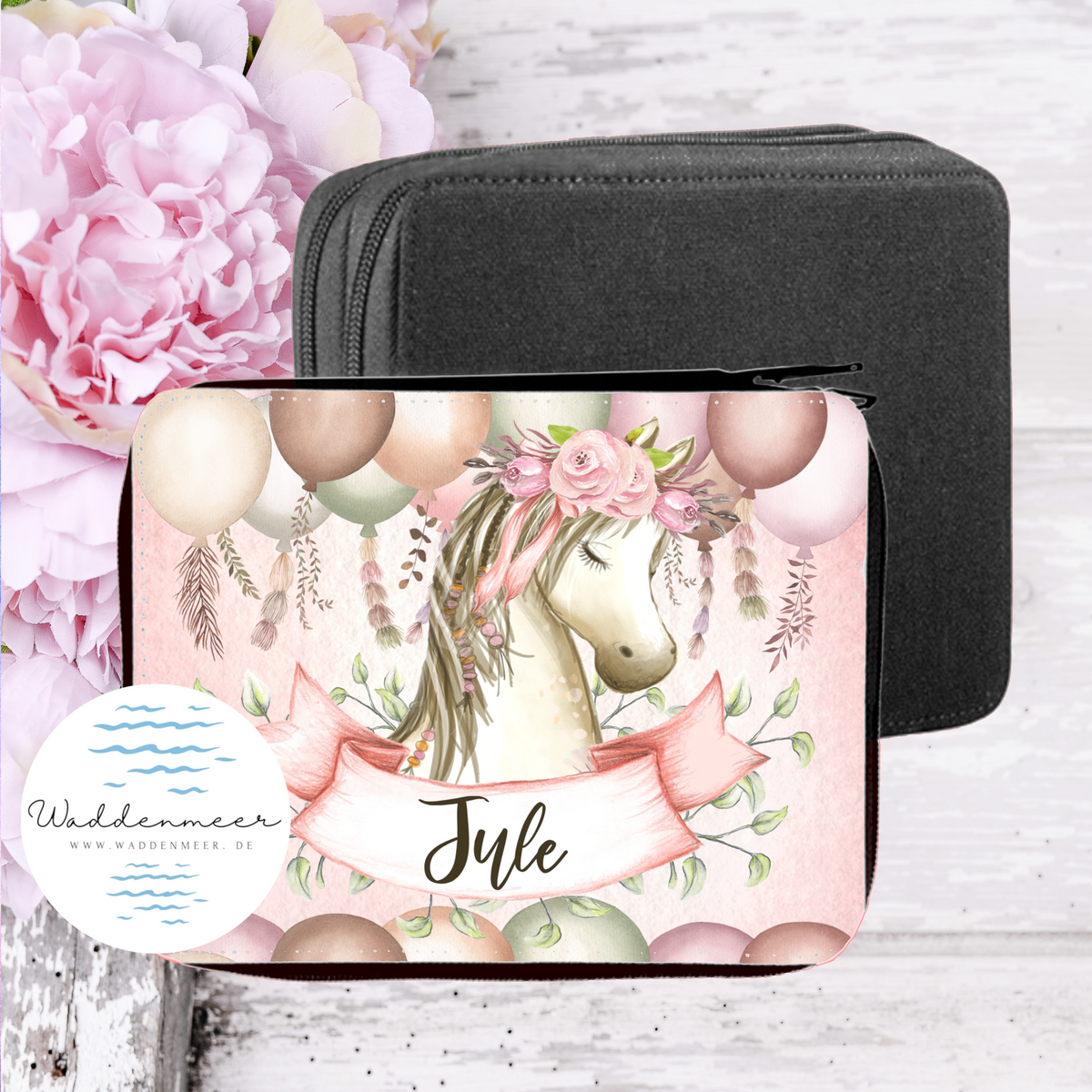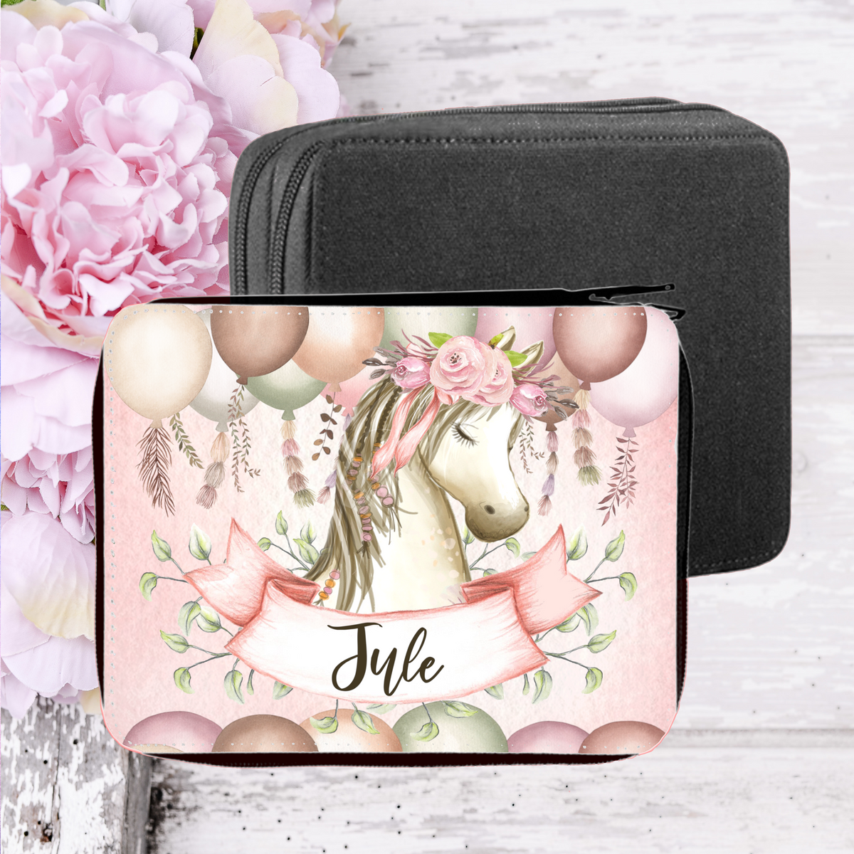 Auf diese Federtasche Wunschmotiv und eigenem Namen ist jedes Kind besonders stolz.