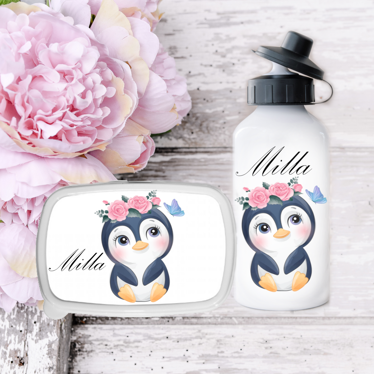 Diese personalisierte Brotdose und Trinkflasche für Kinder ist ein ganz besonderes Geschenk, denn du kannst sie mit einem Wunschnamen gestalten.